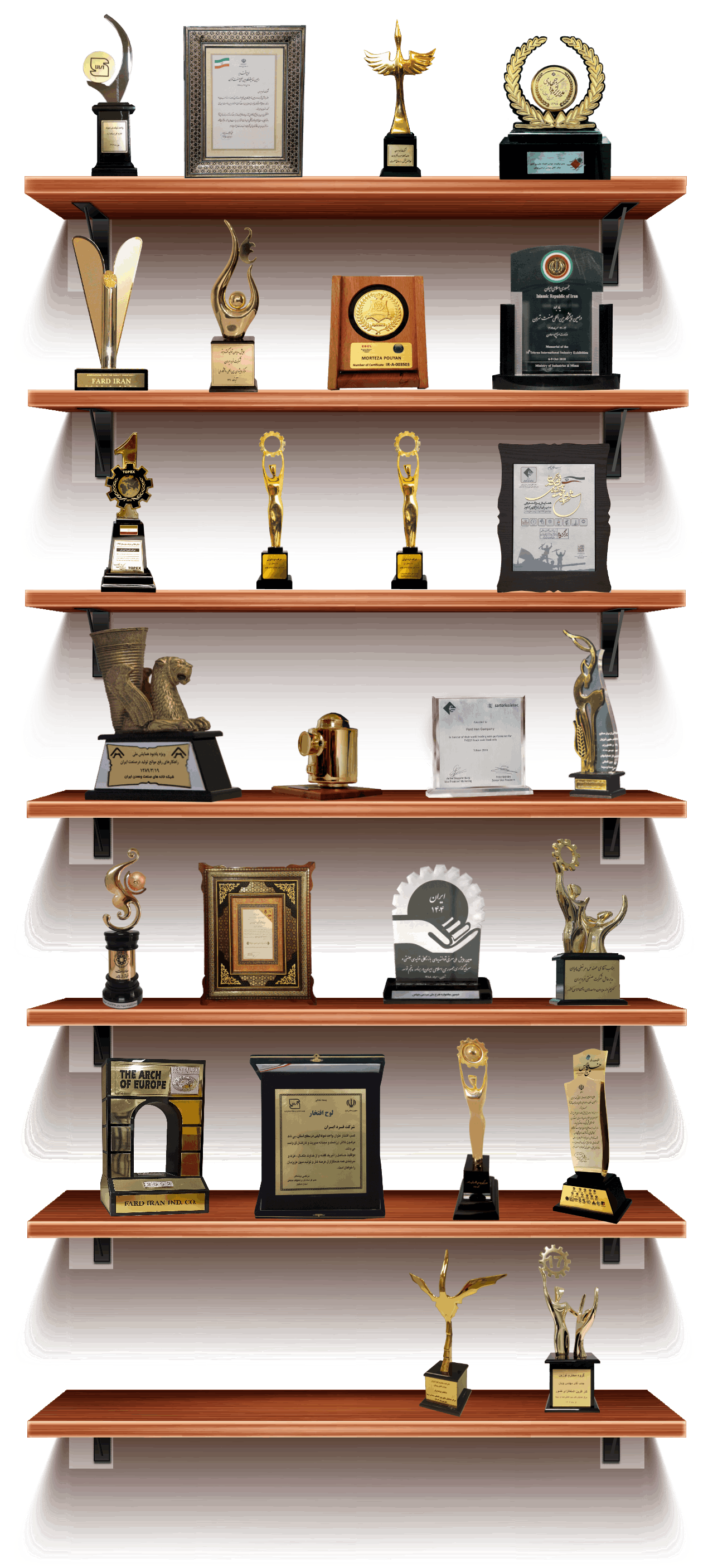 شرکت فرد ایران به فضل الهی و با بهره مندی از توانمندی های علمی فارغ التحصيلان معتبر مراكز علمی داخلی و خارجی و همچنين ارتباط مستمر با موسسات بين المللی تولیدی، تحقیقاتی و پژوهشی در بیش از 60 سال اخير شاهد موفقيت های شگرف علمی و تولیدی در سطح ملی و بين المللی بوده و در راستای تحقق اهداف شرکت و پيشبرد خط مشی کيفيت برتر و انطباق محصولات توليدی گروه، با استانداردهای ملی و بين المللی، ضمن قرارگیری در بین 8 شرکت برتر این صنعت در جهان، موجبات دستیابی به افتخارات بزرگی را فراهم ساخته است. برخی از اين جوايز و موفقيت ها به شرح ذيل می باشد.